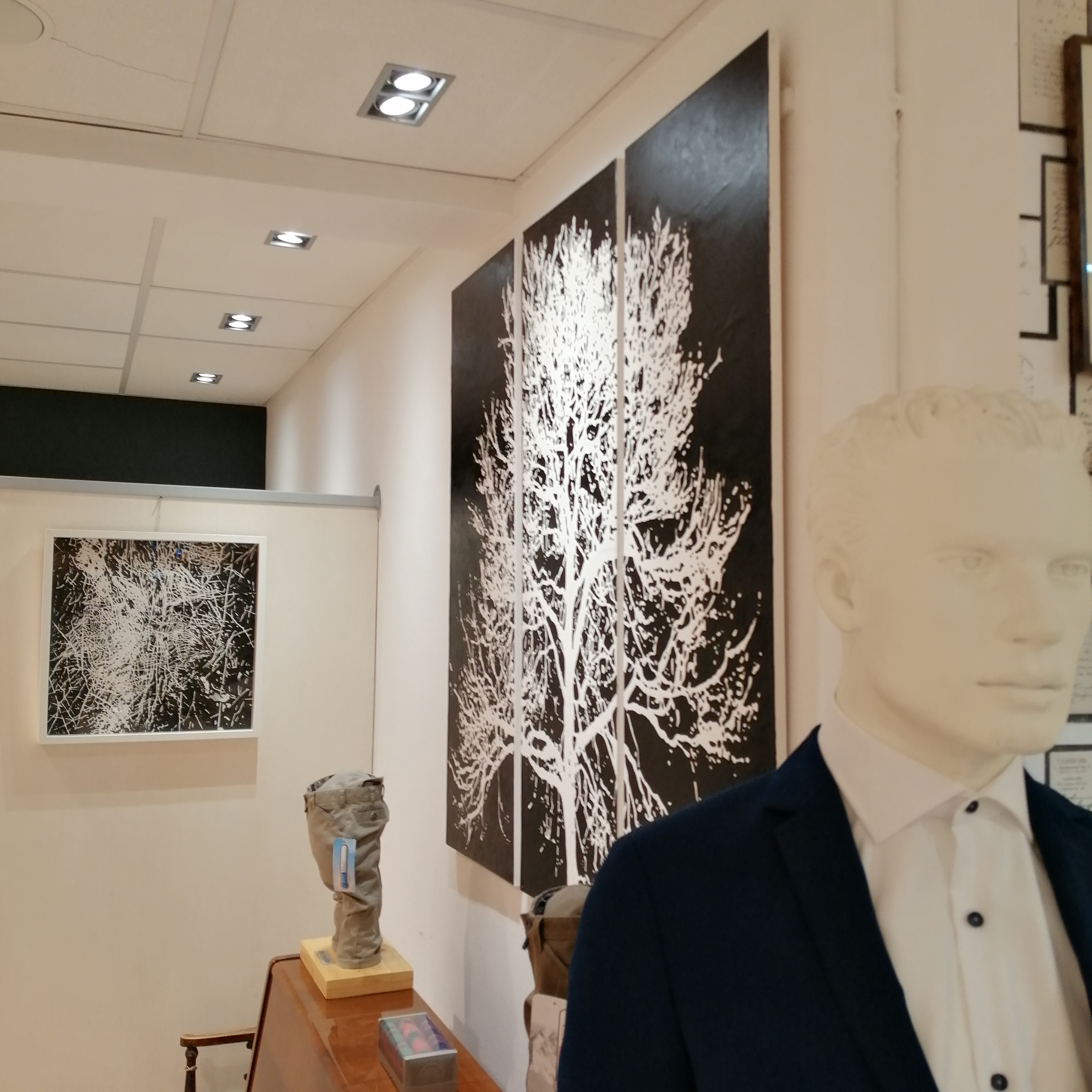 Zeven werken bij ‘Culemborgse Mannen’: zes tekeningen 50×50 cm, inkt (en grafiet) op papier, en één drieluik 120×120 cm, acryl op papier op canvas. Zie voor de werken in detail ‘Atelier 2020’.