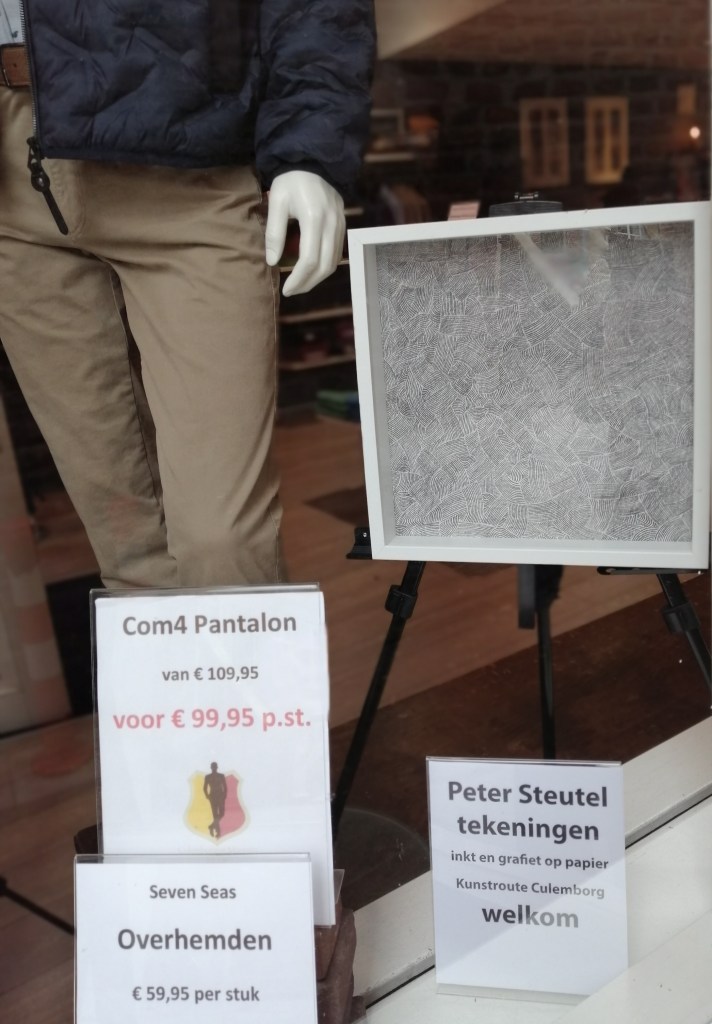 2 en 3 oktober 2021, Kunstroute Culemborg, 1 tekening in de Grote- of Barbarakerk en 10 tekeningen bij Culemborgse Mannen, Vismarkt 1.