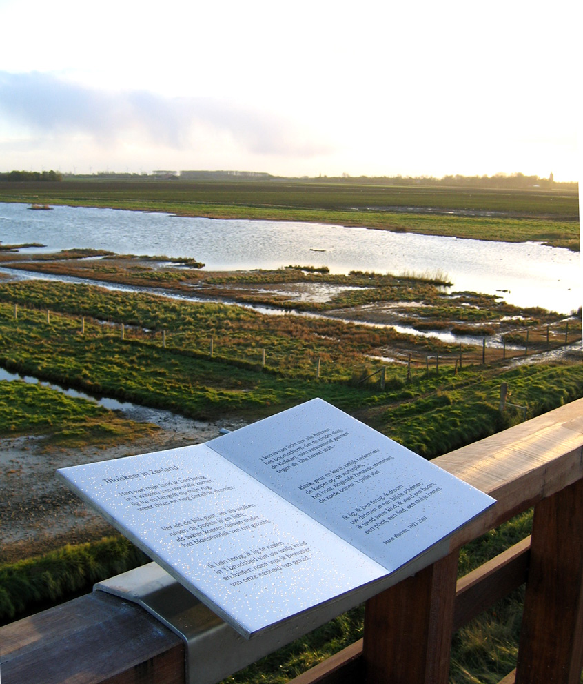 Gedenkteken Hans Warren De opdracht van Staatsbosbeheer: ontwerp een gedenkteken bij natuurgebied Kats, Zeeland (uitvoering in roestvrij staal)